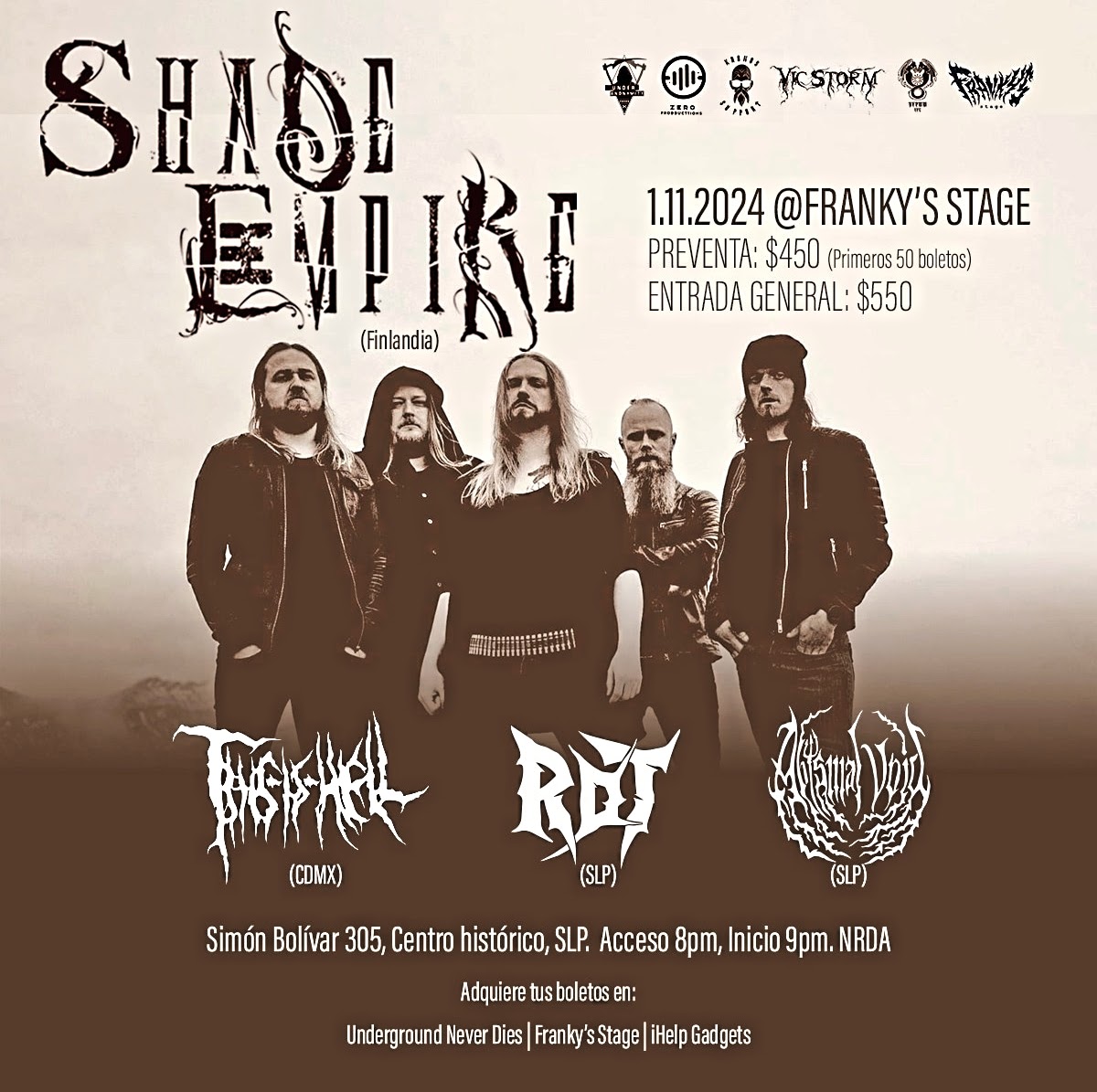 Shade Empire llega a San Luis Potosí con una propuesta sonora imponente que fusiona la oscuridad del black metal con la fuerza del metal sinfónico.